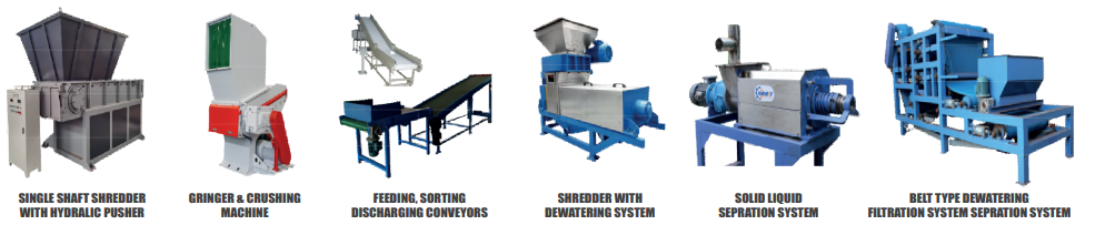 Operating nationally, we design and install both single machines and turnkey solutions for conveying, separating, sorting, and screening. We offer complete machinery for the size reduction, dehydration, (Machineries like - SHREDDERS, SHREDDER WITH DEWATERING, POLYSTYRENE-SHREDDERS, PULVERISERS, CRUSHERS, GRINDERS, FINE-GRINDERS, SORTING-FEEDING-DISCHARGE-CONVEYORS, SOLID LIQUID SEPARATORS, SLUDGE DEWATERING, GRANULATORS, PIPE-GRANULATORS, WIRE GRANULATORS, PROFILE-GRANULATORS, WIRE STRIPPERS, BALE-BREAKER, HAMMER MILLS, BLENDERS, LOG MAKER, GUILLOTINES) and preparation of waste from production and waste collec- tion points.